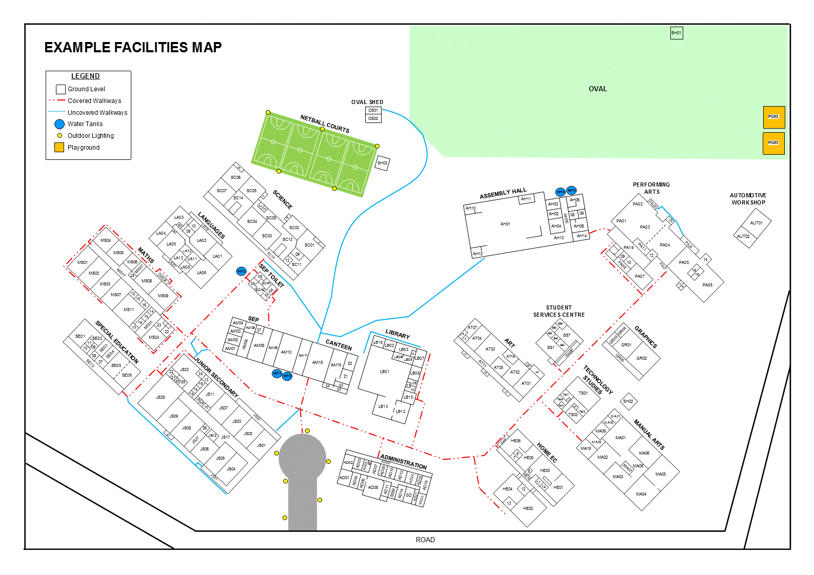 From water tanks to data cupboards and pathways, we'll carefully map each facility and label them to align with your OneSchool facility codes. The final result will be a high quality facility map that fully aligns with your OneSchool facility register.